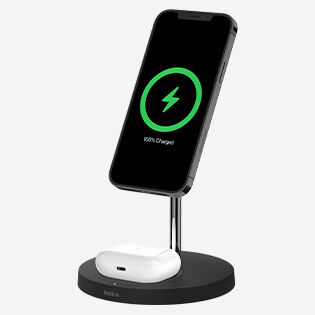 Base de carga 2 en 1 inalambrica Qi2 Belkin blanca
